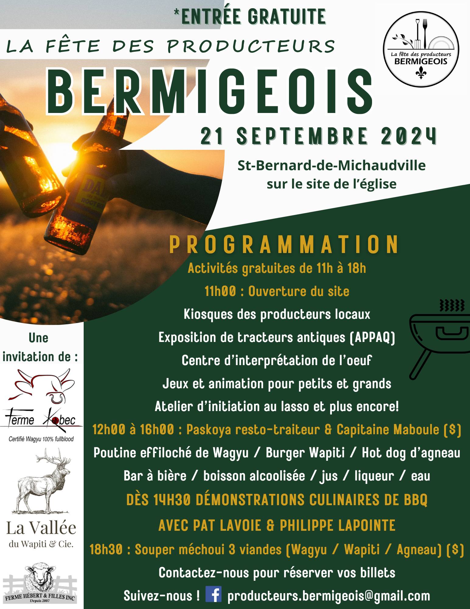 Communiquez avec La fête des producteurs bermigeois pour plus d'infos ou pour réserver vos billets du souper.