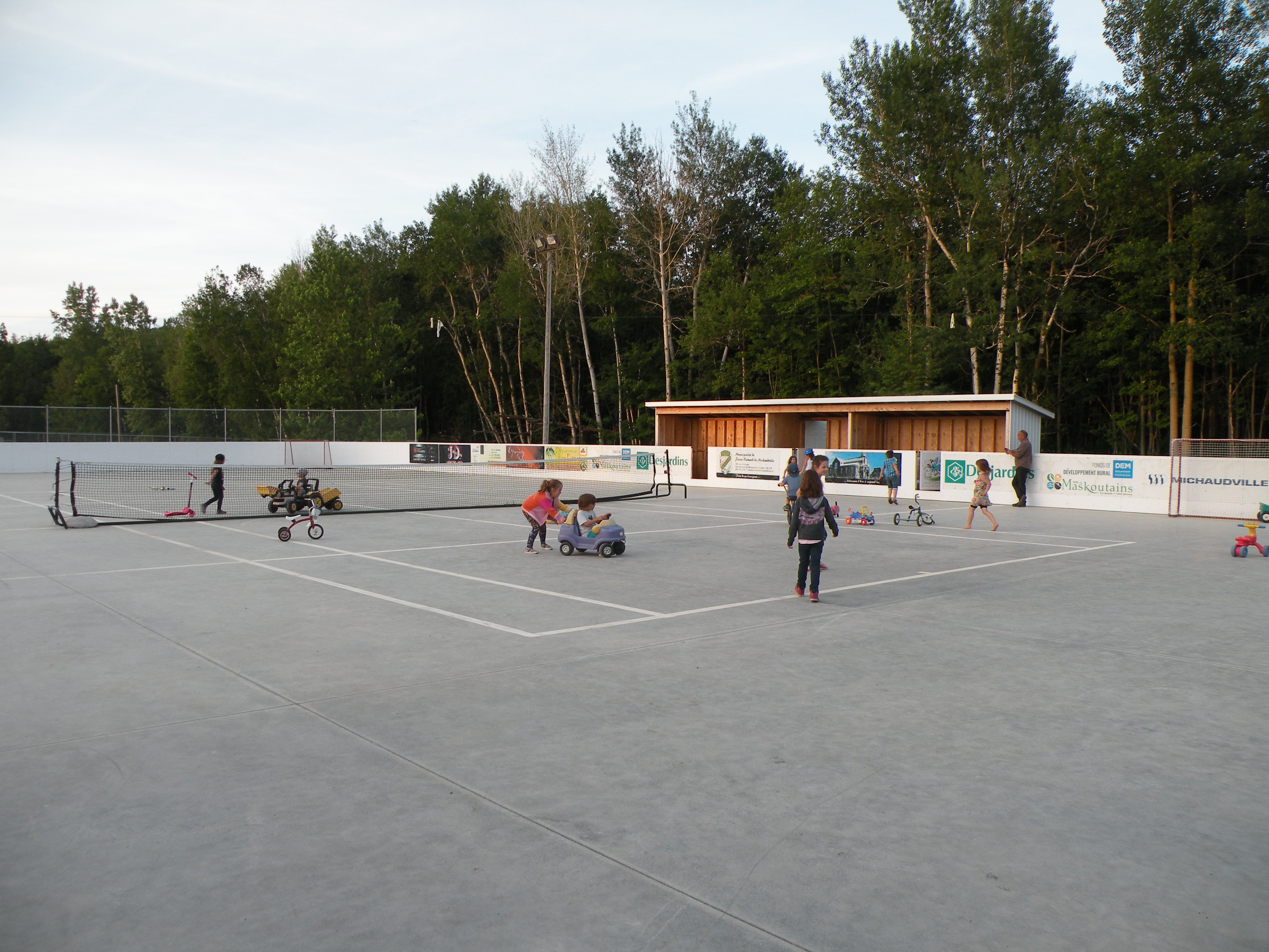 Elle est une surface multifonctionnelle utilisable l'hiver sur la glace pour le patinage, le ballon-balai ou le hockey ainsi que l'été sur le béton pour le tennis, le basketball ou le dek hockey.