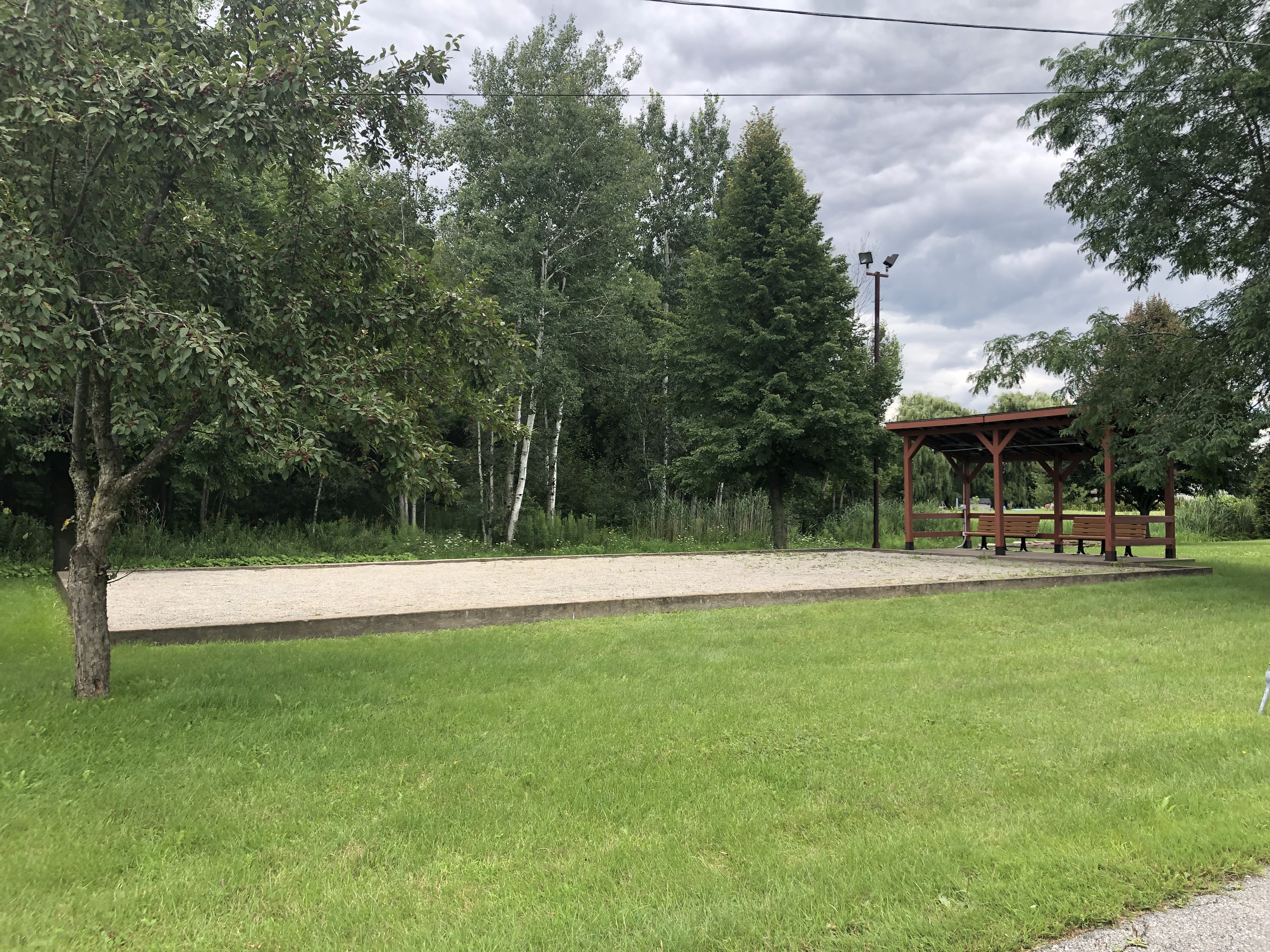 Le terrain de pétanque est situé à côté du Pavillon des loisirs. Il est éclairé et on y trouve un abri avec des bancs. La Municipalité fournit également un râteau pour égaliser le terrain entre les parties.