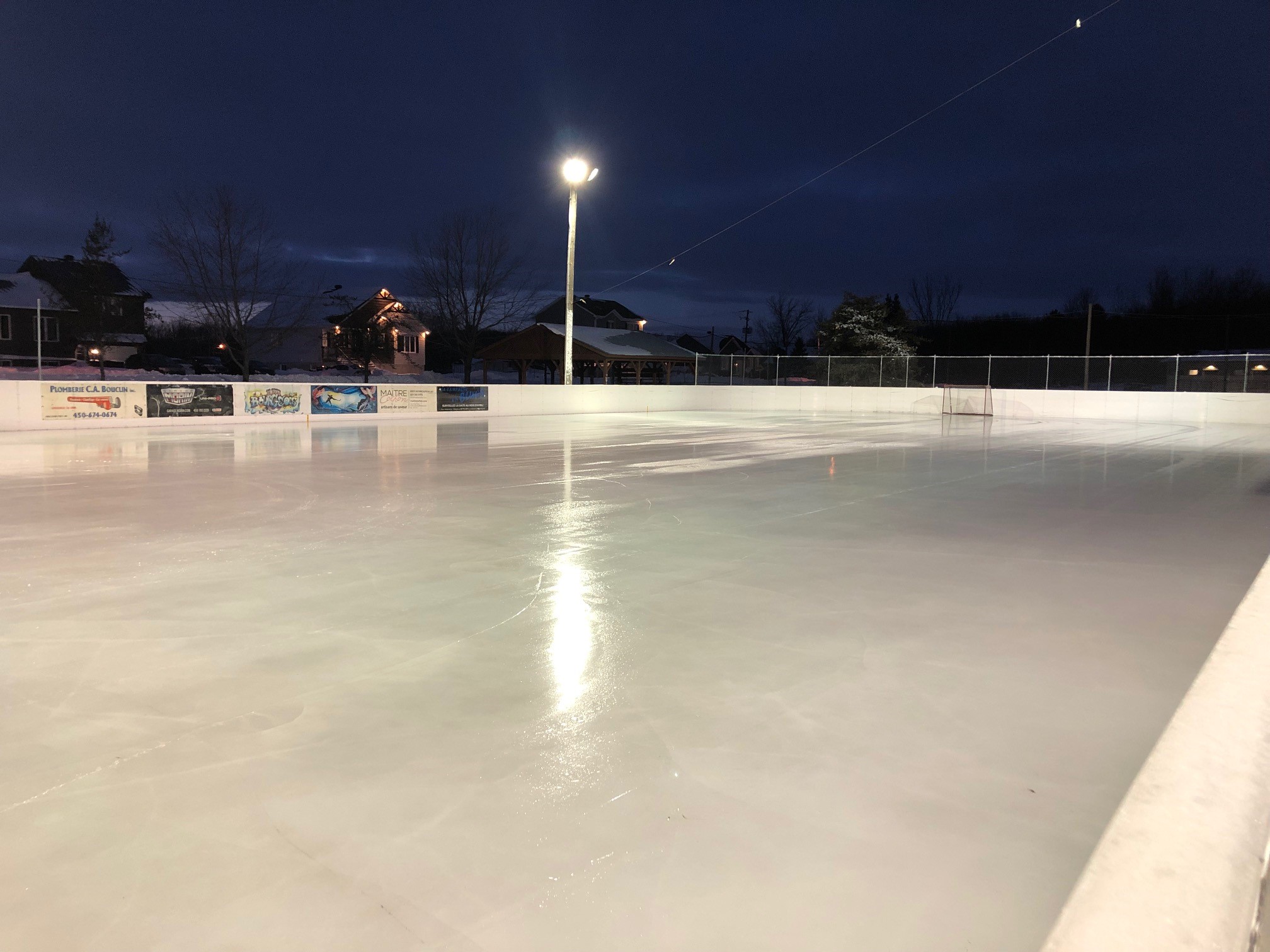 La patinoire extérieure est située au 902, rue des Loisirs.
