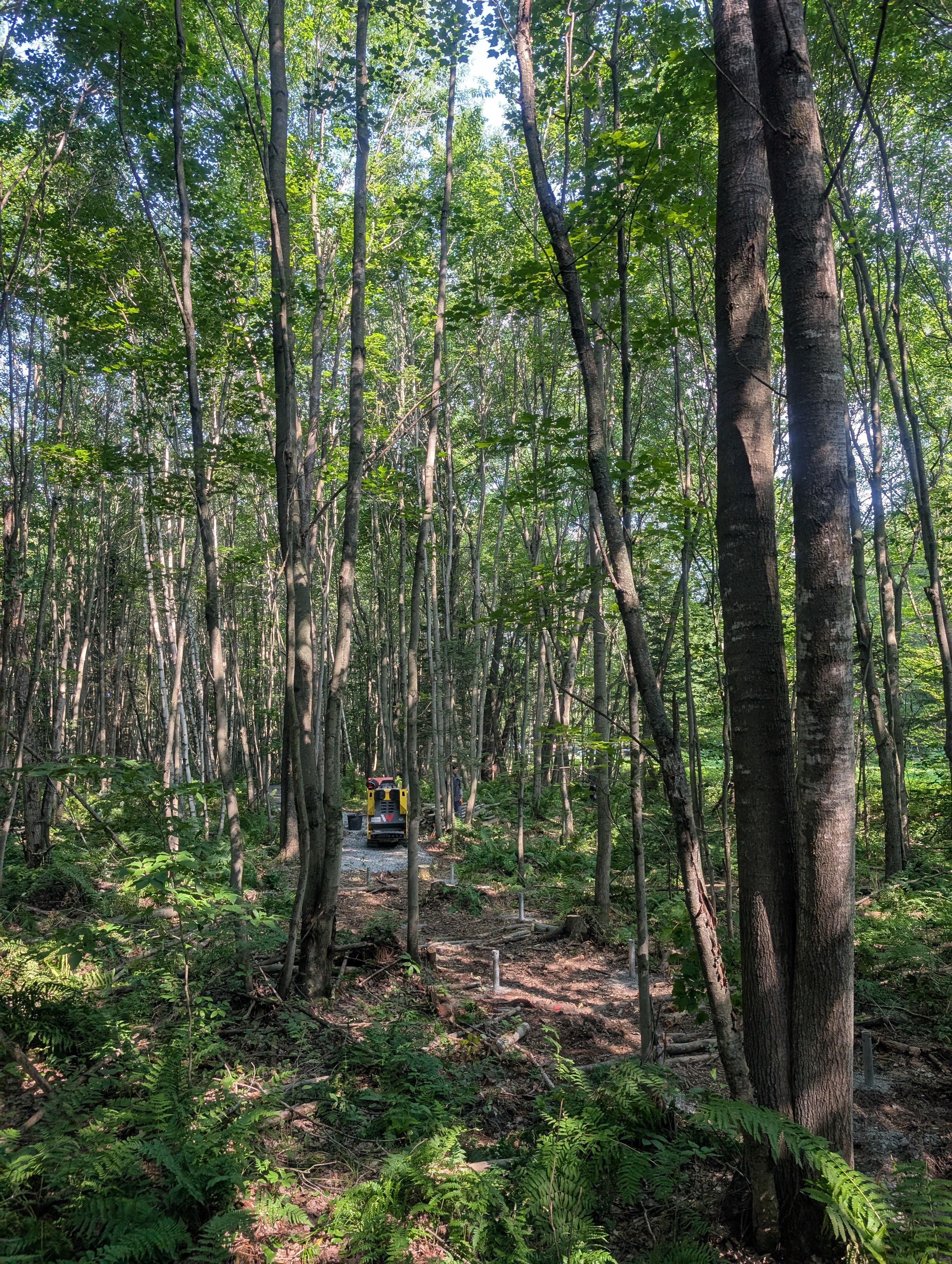 Durant l'été 2025, des travaux ont débuté à Saint-Bernard-de-Michaudville pour la création d'un tout nouveau sentier pédestre au coeur d'un magnifique boisé. Le sentier, d'environ 1 kilomètre, sera complété à la fin de l'automne 2025. Aménagé avec soin par l'organisme de conservation Connexion Nature, il traversera un boisé d'intérêt écologique permettant aux marcheurs de découvrir la faune et la flore grâce à des panneaux d'interprétation, tout en reliant un nouveau quartier domiciliaire et le terrain des loisirs. L'objectif est clair : favoriser le transport actif tout en créant un lieu accessible, inspirant et respectueux de l'environnement qui favorisera la connexion entre les Bergmigeois(es) et la nature.